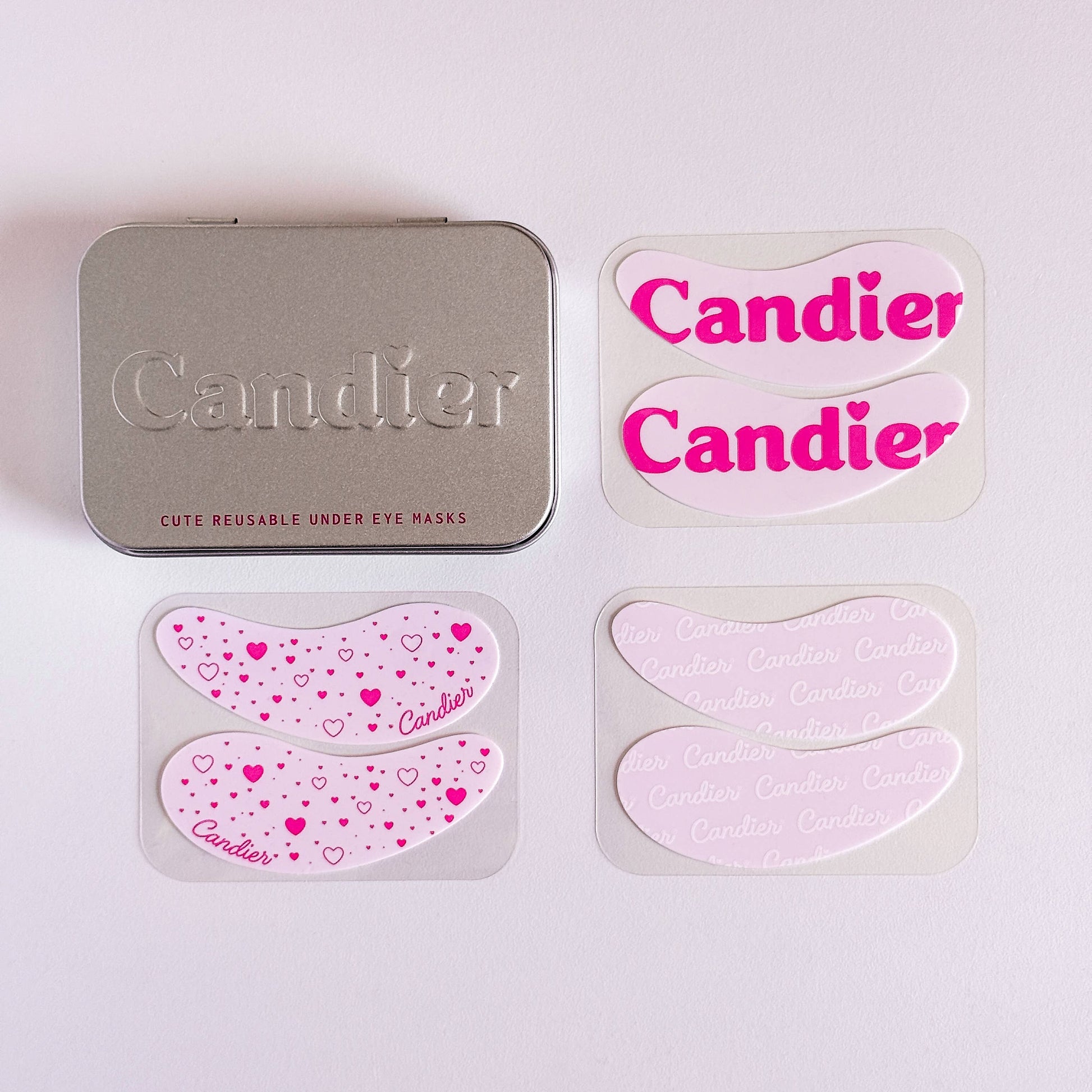 3 different designs included (Candier classic logo, Candier script, and hearts).