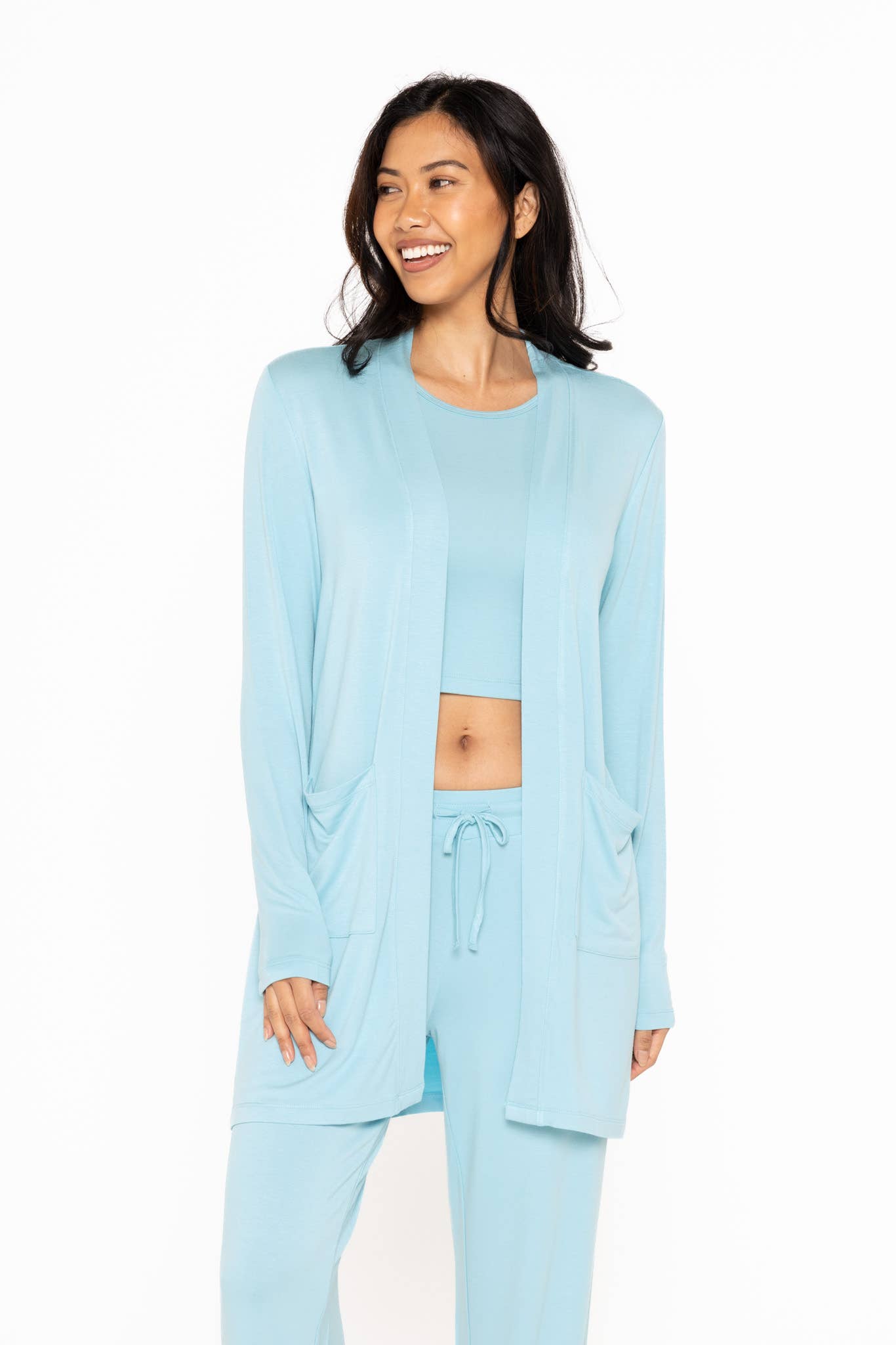 Lounge Open-Front Terry Cardigan in Bright Blue