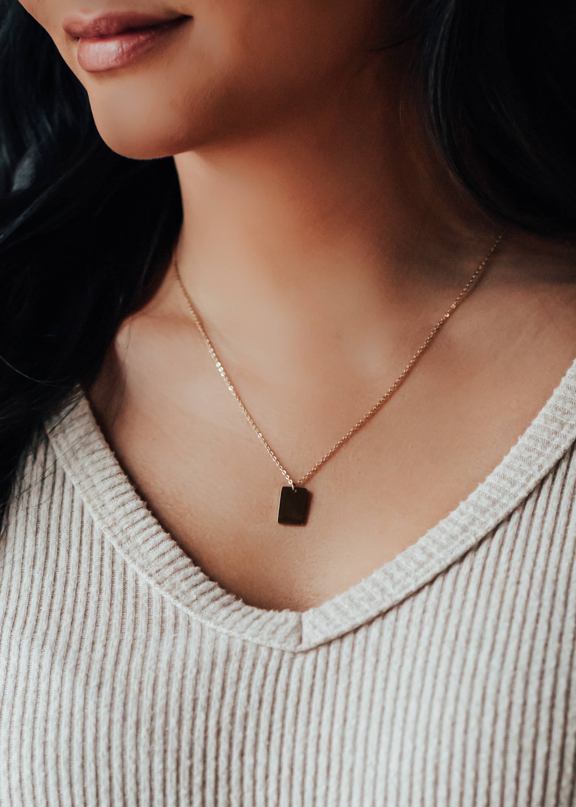 Gold necklace with rectangle pendant 16" length, 4" extender Stainless steel Lead and nickel free