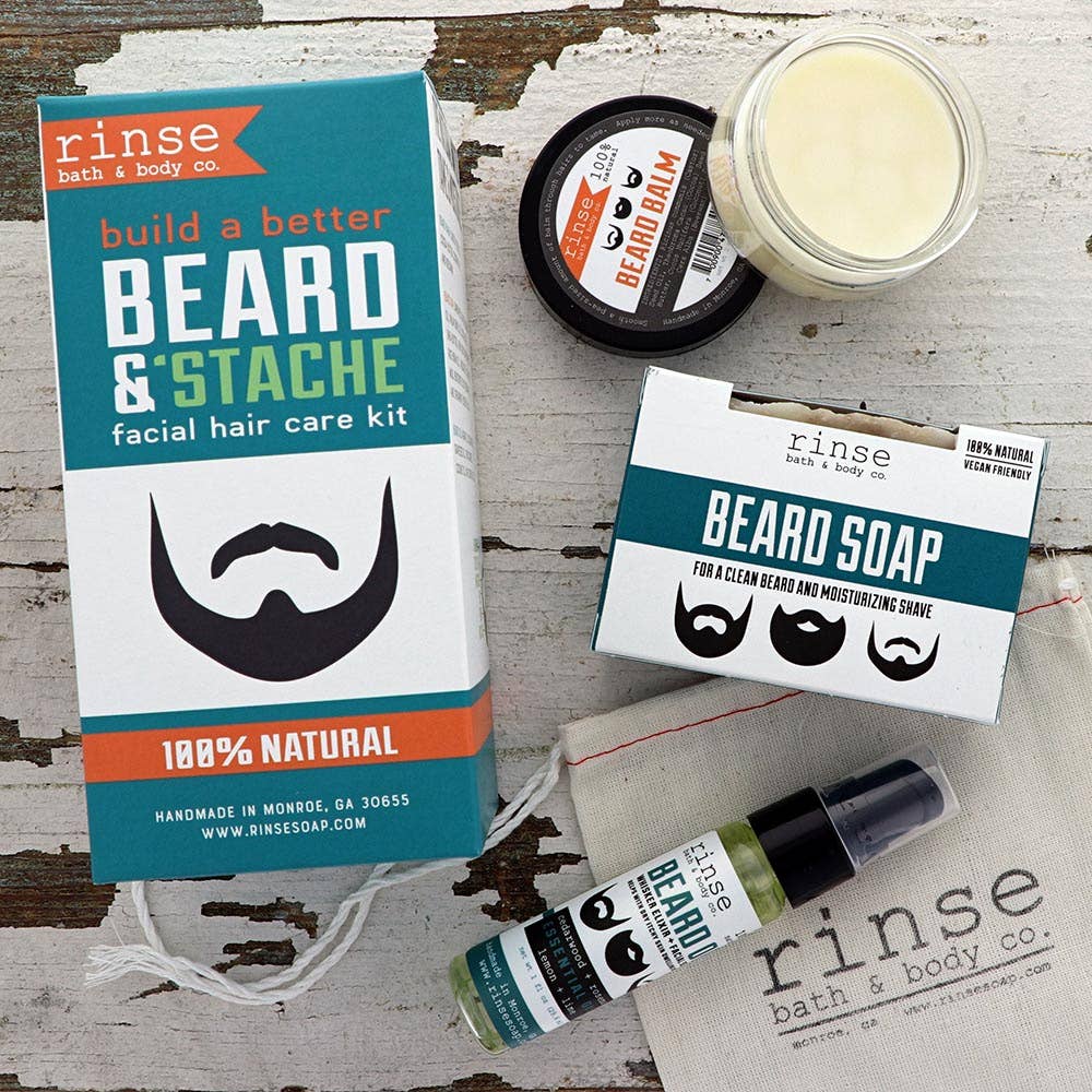 Everything needed for the best beard - all in one convenient kit. Whiskers will rejoice after being treated with the Beard Soap, Beard Oil & Beard Balm. Beard Soap (approx. 4.25 oz) – gently wash the face & whiskers. Beard Oil (1 fl oz) – moisturize the whiskers & the skin beneath them. Beard Balm (2 oz jar) – tame flyaways & provide extra moisture.